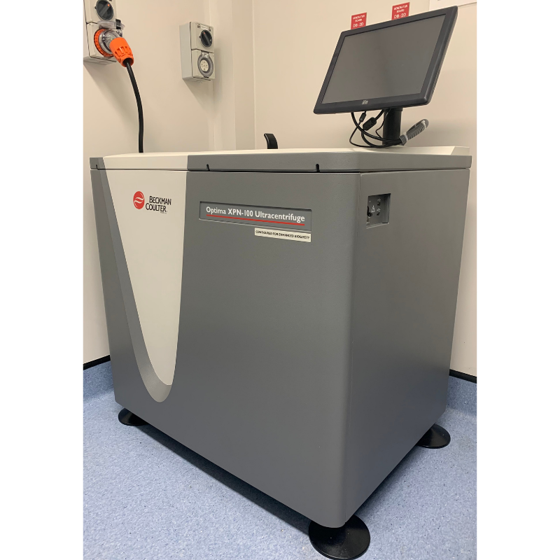 UltracentrifugeThe Beckman Coulter Optima XPN-100 is a high-performance floor-standing ultracentrifuge designed for the separation and purification of small particles such as viruses, proteins, and plasmids.